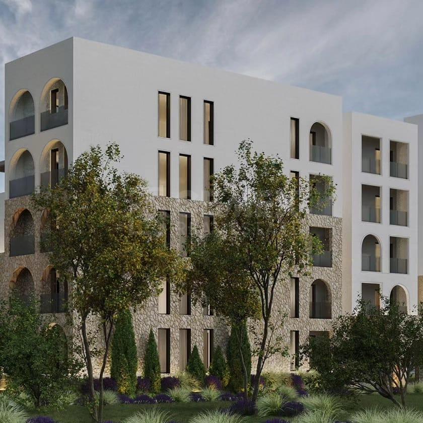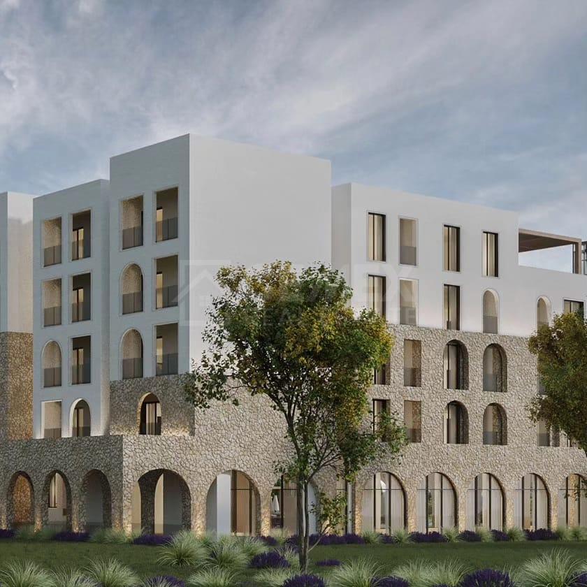 Apartamenti është pjesë e një kompleksi të ri në fazë ndërtimi.