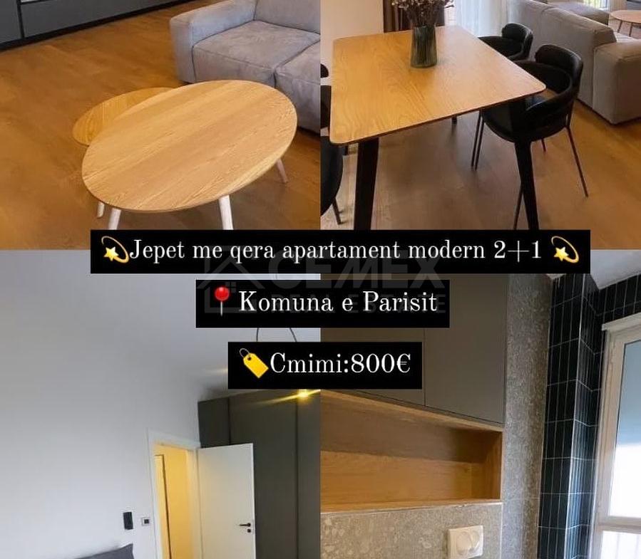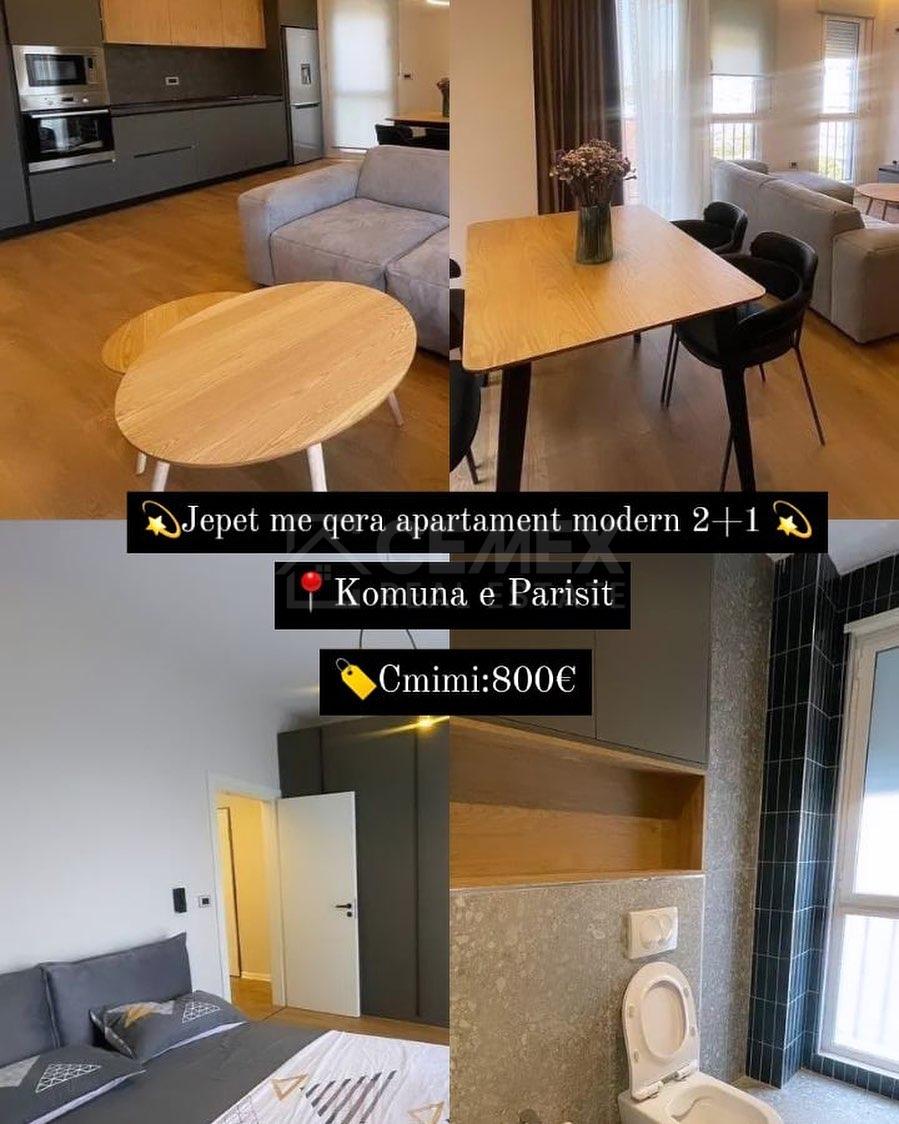 Super Apartament me qera tek Komuna Parisit! 📐2+1. ✅Pallat i ri me ashensor. 😍Super mobilim me arkitekt. 🤑Cmimi 800€